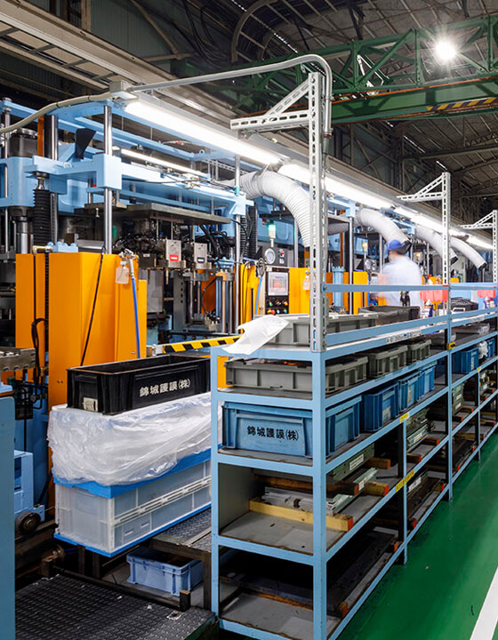 大阪府八尾市に本社を置く錦城護謨株式会社は、1936年にゴム素材商社として創業した。現在、ゴム製品関連事業に加え、地盤改良によって土地づくりを行う土木事業、誰もが共存できる空間をつくる福祉関連事業の3つの事業を展開。身近な製品としては水泳用のキャップや家電製品のパッキンなどがあり、炊飯器のパッキンは国内シェア数十%にものぼる。その他にもOA機器や医療機器の部品など、年間5000種類ものゴム製品をつくっている。
