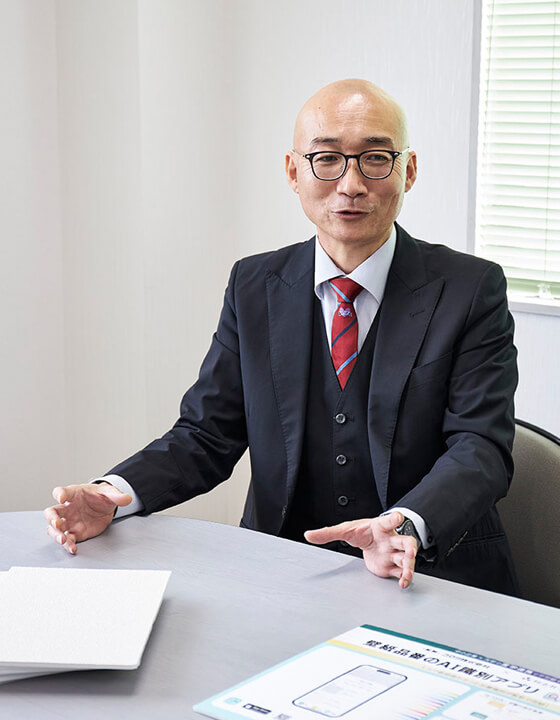 東大阪市を拠点とするコマツ株式会社は1976年創業。インテリア事業やスポーツ環境事業を中心に、設計、施工、資材販売などを行っている。内装工事では、使われている壁紙や床材の品番を識別しなければいけないことが多いが、「私が新人だった25年前とまったく同じ方法が続いていた」と代表取締役の小松智氏は話す。例えば、今と同じ壁紙でリフォームしてほしいという依頼があった場合、これまでは現場に行って何冊ものサンプル帳と照らし合わせ、何百とある壁紙のなかからメーカーや品番を特定しなければならず、ひとつの壁紙を識別するのに3時間かかることもあった。当然、移動にも時間・費用がかかる。「オーナー様たちと一緒に壁紙を決めても、実際に工事してみると微妙にイメージと違った…というケースも考えられます。後々クレームになる可能性が高いので丁寧に識別しなければなりません。また、せっかくインテリアに興味を持って入社したのに、いつまでも壁紙とにらめっこでは辞めたくなる人もいるでしょう。こんな状況を何とか改善したいと思っていました」と小松氏。人力ではなく科学技術の力で識別する方法を求めて自ら企画書を書き、18もの産学連携機関や大学に打診したという。しかし、照明の色や強度、影などによって見え方が異なる壁紙は識別が難しく、「今の技術では無理」と断られるばかりだった。