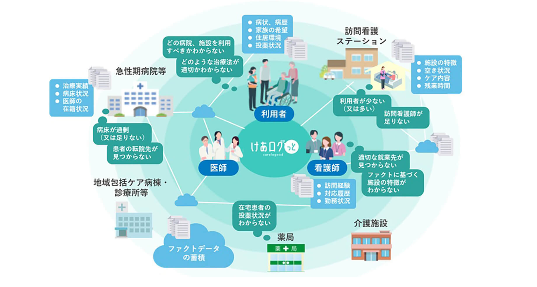 地域全体の医療リソースを最適化する地域包括ケアプラットフォーム「けあログっと」の機能をさらに強化し、病院および地域包括ケアシステムに関わる多職種間のより広範な連携を可能にし、地域医療の効率化と質の向上に貢献する。