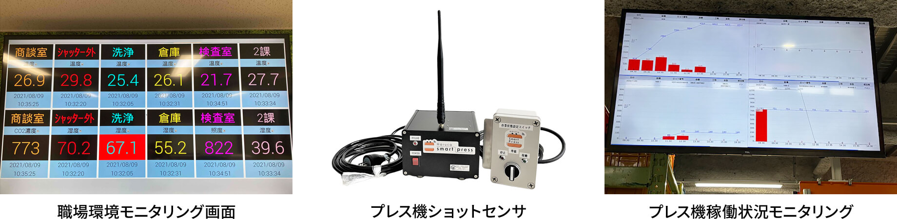 最後に、“プレス屋が作ったDXシステム”として開発したHaruca Smart Pressにより、プレス機のショット数を長距離無線でリアルタイム監視し、生産ロットごとの進捗や稼働率を自動計算し、メンテナンス時期をアラートで通知します。